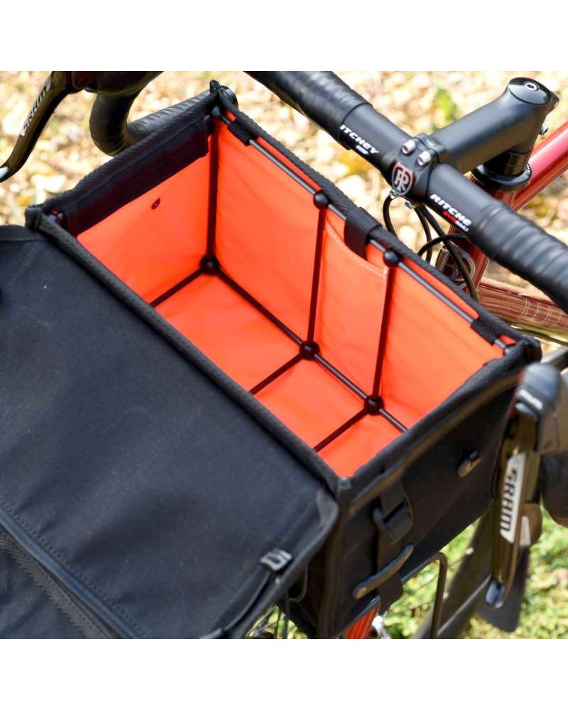 Den indvendige struktur, der består af kulfiberrør monteret i plastdele, sikrer taskens stivhed og holdbarhed, samtidig med at den giver god støtte på bagagebæreren for optimal stabilitet, når stropperne er strammet.