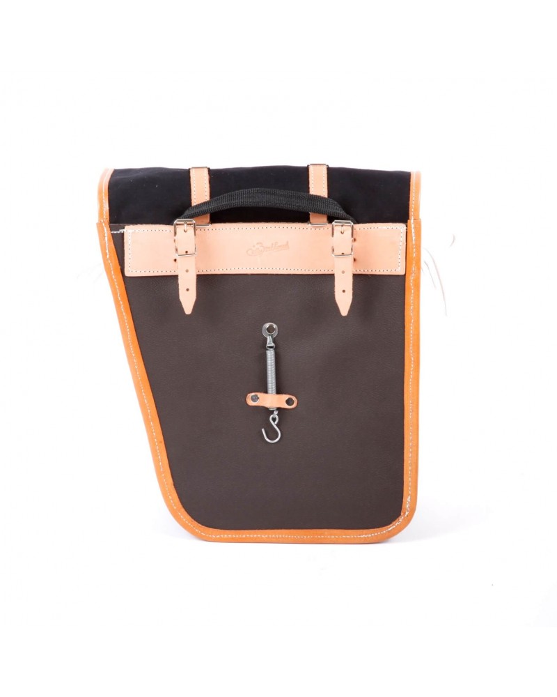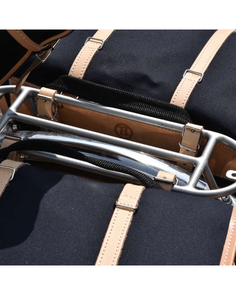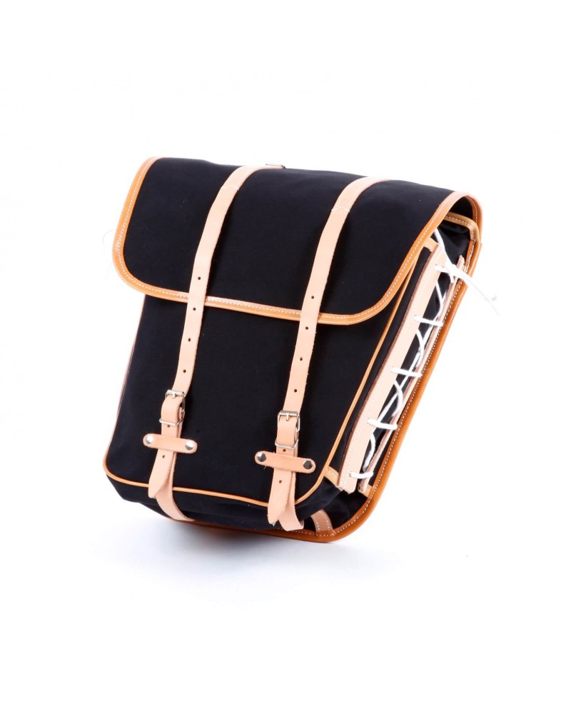 GB367 Packtaschen-Set mit Lederriemen und Federbefestigung - Schwarz/Natur
