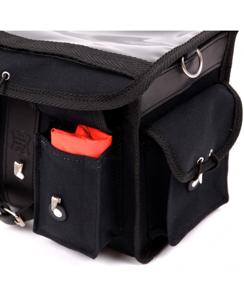 Nuestras bolsas de manillar y laterales de algodón recubierto y cuero son extremadamente impermeables.