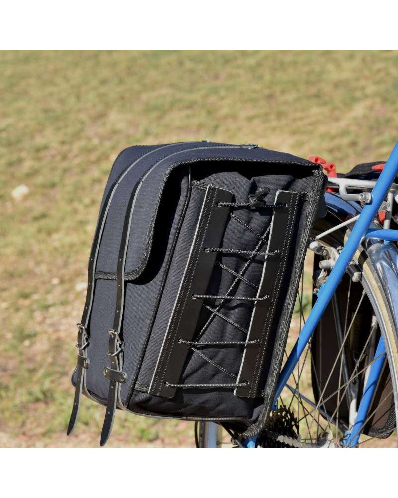 Kuten kaikki laukkumme, nämäkin laukut on valmistettu erittäin vahvasta vedenkestävästä puuvillakankaasta ja nahkavahvikkeista sekä reunasidonnasta, ja ne valmistetaan käsityönä työpajassamme Fleurvillessä, Etelä-Bourgogneissa, Ranskassa.