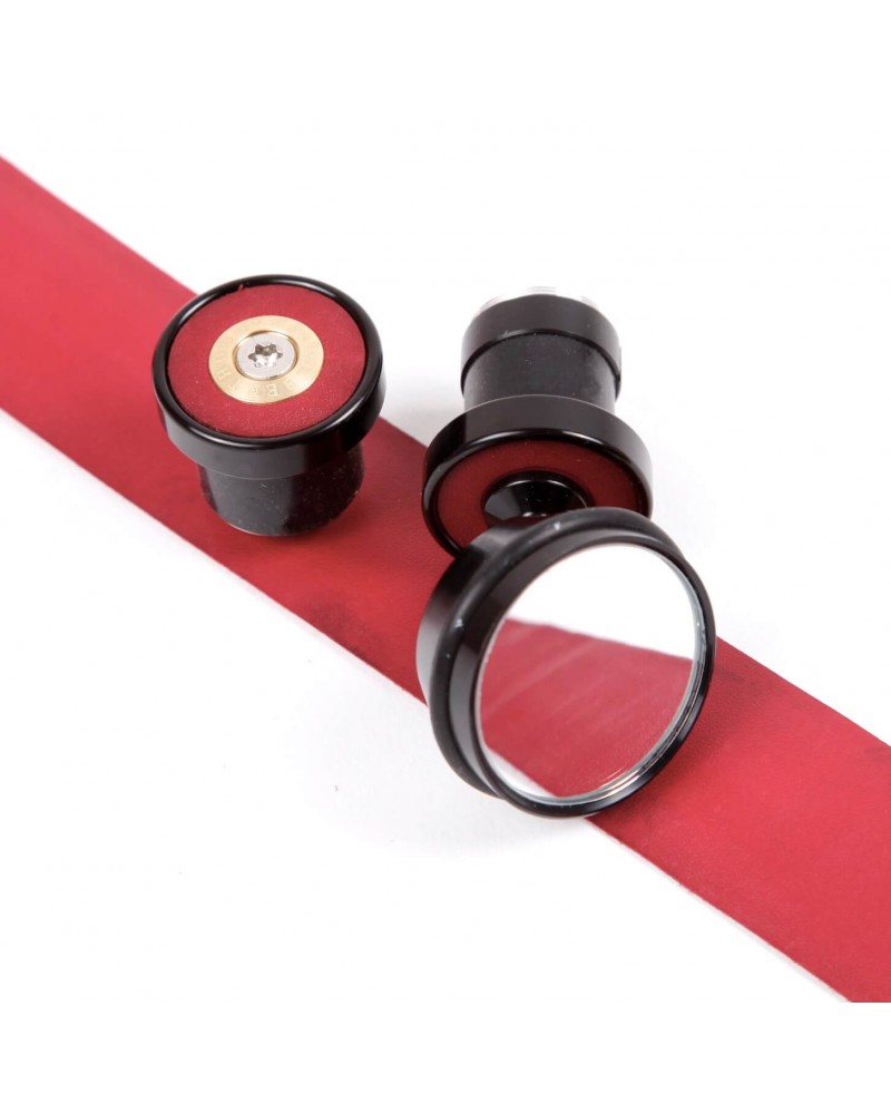 Specchio bar-end e tappo coordinato - Anodizzato nero / Edizione limitata in pelle