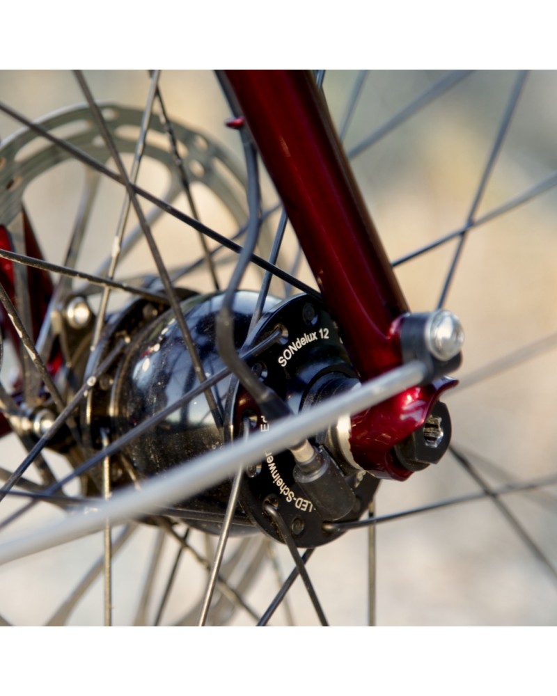 Koaxialadapter för enkel anslutning av pannlampa och/eller laddningsutrustning till en SON dynamohubb.